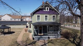 Welcome to this stunning historic home with timeless beauty. From the front porch you'll be immediately welcomed by the open staircase and the warm original woodwork that flows throughout most of the home. The kitchen is a must see. Quality cabinetry, quartz countertop, SS appliances, extra deep sink, new faucet, updated lighting and maple flooring add to this beautiful home. The main level has the primary bedroom with newer windows. The ¾ bathroom was completely renovated Beautiful cared for hardwood floors add to the rich character of the space. Windows flood the rooms with natural light. This home could also be a multi-generational home with a locking door at the top of the steps separating the upstairs from the main floor. Upstairs already has a kitchen and electricity has been split. Don’t want to mow the over 1/3 acre lot. A programmed electric lawn mower does the work for you. It is programed to do a different part of the yard on different days. Sit outside in the morning sun on the east facing patio, in the evenings, enjoy the gazebo and if you are someone who loves porches, enjoy the front porch as well. The hard to find four car garage is flexible. It comes with a wooden wall you can install and split the garage for a renter if you want