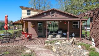 Portage Lake year round home/cabin. Enjoy the views and sunsets with this west facing lot. Sandy lake bottom. 3 bedroom & a 3/4 bath. Comes mostly furnished. East facing deck. BBQ area. Gas burning fireplace, separate dining room, breakfast bar, front porch eating area, plenty of windows, and two of the bedrooms are lakeside and then one upper bedroom. Screen house and deck. Bunk house sleeps 7 and has a covered deck facing the lake. Lakeside shed. Lakeside firepit and wood shed close by. Double garage and an additional portable shelter for the pontoon that is included.