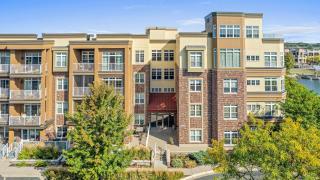 Silver Lake Village community offers plenty of amenities just steps from shopping, dining, walking paths, transit and more. This third floor condo welcomes you in with a spacious open-concept and tons of natural sunlight. Take in the wonderful pond view and live summer music series at Salo Park from the screened in deck. Curl up and relax in the three-sided sunroom or by the gas fireplace. Smartly designed kitchen with pull-outs in lower cabinets, under cabinet lighting, stainless appliances, granite counters and open to dining area. Escape to your own private primary suite complete with custom designed walk-in closet and oversized bathroom. Upgrades include Remote Control Blinds Throughout Installed 2022, New Furnace and A/C 2021, Professionally Painted 2021, New Carpet 2021, Custom Closet Shelves 2023, New Washer 2021, Screened Porch/Maintenance Free Decking 2022 and many updated fixtures throughout. Some of the complex amenities offered are the courtyard with firepit and gas grills, workout room, guest suite, party room, individual locked storage room, secured underground parking and more. This condo comes with two dedicated garage spots.