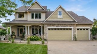 Impressive luxury inside and out! The original owner was the builder, so this quality-built home is loaded with upgrades and unique custom features. Perfectly situated just steps away from 4,900 acres of Elm Creek Park Reserve, which offers amenities for almost every outdoor activity. This home offers both natural beauty and everyday convenience. The exterior boasts gorgeous curb appeal. First thing you will notice besides the beautiful landscaped yard with in-ground sprinkles, is the concrete driveway leading to the 3 car heated garage. An expansive covered front porch greets you to the front door. Inside, the open and inviting layout begins with a two-story slate-floored foyer, and a catwalk that overlooks the 2 story massive lower level family room/great room with floor to ceiling windows and leads you to a cozy hearth area with gas fireplace and informal dining. The spacious kitchen is a true centerpiece with a huge island, granite countertops, under cabinet lighting, stainless steel appliances and adjacent formal dining with new premium carpet. Step outside onto your large maintenance free deck which overlooks the creek that connects two ponds. In the winter, you will find it being used for winter ice skating and hockey. A convenient half bath and laundry room with large walk-in closet complete the main level. New premium carpet leads you upstairs to four spacious bedrooms, a full bath with dual sinks for 3 of the bedrooms to share and at the end of the hall, you will come into the luxury owner’s suite with tray ceilings, an over-sized (HUGE) walk-in closet and a spa-like bath retreat, with jetted soaking tub, walk-in shower and heated floor. The lower level is designed for entertaining! All new LTV flooring, floor to ceiling double-sided fireplace, floor to ceiling windows, two expansive living areas or recreational area, custom wet bar with under cabinet lighting, wine and beverage fridges, another huge bedroom that doubles as an office, a fully renovated full bath in 2024, a three-season hot tub room and storage galore! All newly painted interior in 2025, new roof in 2024, new furnace and A/C in 2022 and new water heater in 2025. Just move in and enjoy!!