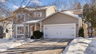 Welcome home! Updated and upgraded two story with 4 bedrooms up! Open concept main level and finished lower level. Kitchen offers lots of white cabinets, granite counters, tile backsplash, stainless steel appliances, gas range, and rollout drawers. Primary suite includes a private en suite with dual vanity, tile shower, and walk in closet. Enjoy the gas fireplace, hardwood floors, closet organizers, window treatments, egress window in the lower level, and ring doorbell. White doors and trim throughout. NEW furnace, heat pump (AC), water heater, driveway, carpet, paint, and more! Roof is only 3 years old! All of the bathrooms are updated! Lots of storage space. Step outside to your flat backyard, large deck, and paver patio with firepit. Exterior offers maintenance free siding, gutters with guards, and storage shed. Schedule your private tour today!
