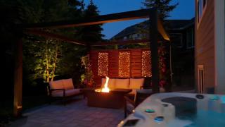 Upstairs, two additional bedrooms offer privacy and comfort, while the fully finished lower level provides even more living space, including a guest suite with a bedroom and bath. Outside, indulge in your private hot tub under a beautiful pergola, creating the ultimate backyard oasis.