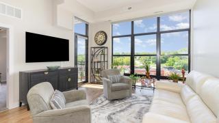 Luxury, Light, Livability. Treasure treetop, panoramic views of the western sky from this extraordinary, two bedroom, two bath, top floor contemporary condo. Admire the light radiating from expansive, floor to ceiling windows, a 10' ceiling, an exquisite kitchen with granite counters, custom designed cabinets, tiled backsplash, and stainless steel appliances, a primary suite with separate closets, paneled doors, a pocket door, a covered deck, and top floor living to watch eagles, hawks, and clouds. Enjoy the community room with a kitchenette, deck, grills, and patio overlooking the Cannon River, workout in the exercise room, and leisurely stroll along the Cannon River trail or downtown Northfield. Welcome to The Crossing of Northfield Condominiums.