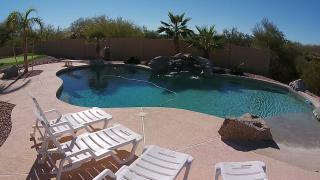 Gated community of Cactus Gates in North Scottsdale. This spectacular custom home is situated perfectly on an interior lot that is almost three-quarters of an acre (30,438) offering amazing valley and sunset views. Home also offers a massive eat-in kitchen and family room space w/fireplace, vaulted beamed ceiling and wall of glass to take advantage of the views and impressive private yard. Formal living and dining rooms, split master bedroom floor plan, 3 spacious guest bedrooms with one en-suite, large master bedroom w/fireplace, 3 walk-in closets, raised double vanity, separate shower/tub, exercise area and 2 exterior exits. Incredible yard w/oversized covered patio, pebble-tech pool, water feature, putting green, and room for activities. Great location and home for any buyer!