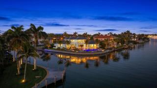 Luxury Portfolio International is proud to present this exciting home in Naples, Florida. Nestled in the prestigious Aqualane Shores, this stunning corner-lot estate offers an unparalleled blend of elegance, sophistication, and waterfront living. This property boasts 225 feet of pristine water frontage with coveted southwest rear exposure, delivering breathtaking sunsets and seamless Gulf access. As you enter, you're greeted by an open, winding staircase that exudes architectural beauty and sets the tone for the sophisticated design throughout. Almost every space offers captivating water views, creating an inviting, serene atmosphere throughout the home. Step outside to discover your own resort-style oasis. You'll find 5 bedrooms, 5 full baths and 2 partial baths in this home. This property is listed by William Raveis Real Estate, a member of Luxury Portfolio International.