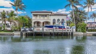 Luxury Portfolio International is proud to present this fine home in Naples, Florida. Welcome to this boater's paradise! This Southern-exposure residence has been meticulously designed with every detail in mind. Step through the stunning 10-foot arched mahogany front door and into a spacious, welcoming interior with an open floor plan ideal for both relaxing and entertaining. Notable features include extensive crown molding, a cozy fireplace, soaring ceilings, impact windows and doors, plantation shutters, and an elevator for added convenience. You'll find 4 bedrooms, 4 full baths and 1 partial bath in this home. A durable fiberglass deck board, private dock, seawall, 28,000-lb boat lift, and secondary lift complete the picture. This property is listed by John R. Wood Christie’S International Real Estate, a member of Luxury Portfolio International.