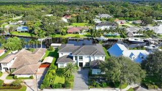 Luxury Portfolio International is proud to present this property in Palm Beach Gardens, Florida. Built new in 2020, this fabulous Palm Beach Gardens Modern Island Smart Home boasts over 7900 total sq ft! A wall of French Doors all open to a massive covered and screened patio with a summer kitchen and a beautiful, heated infinity pool/spa and 100' of waterfront, including a boat dock! The open floor plan includes a Gourmet Chef's kitchen with 2 large islands and a huge pantry! It's a boater's paradise yet just minutes away from everything.
