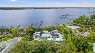 Luxury Portfolio International is proud to present this fantastic home in Stuart, Florida. Set on an expansive double riverfront lot, this extraordinary residence boasts over 200 feet of protected shoreline. This 7,500 square foot modern masterpiece is a harmonious blend of cutting-edge design and the serene allure of waterfront living. With unobstructed, sweeping views of the St. Lucie River, the home serves as a front-row seat to the spectacular beauty of panoramic sunsets. The 360-foot private dock, extends gracefully into the river, ideal for boating and just minutes away from the St Lucie Inlet and Atlantic Ocean. You'll find 5 bedrooms, 5 full baths and 1 partial bath in this home. This property is listed by Illustrated Properties Real Estate, Inc., a member of Luxury Portfolio International.