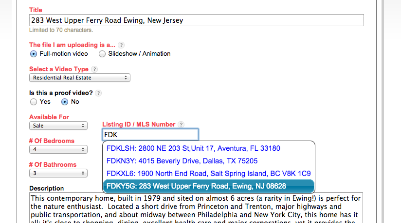 You can also connect a video to a Listing ID/MLS Number (as show below). This will also auto-fill and auto-update the video details.