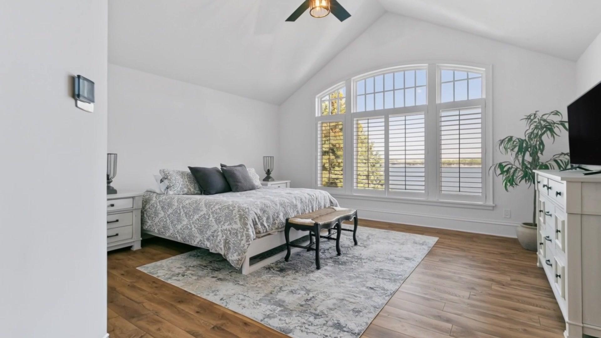 Your new life on the sunny shores of Prior Lake starts now! Imagine summer and the rest of your life right here. BIG water views set on a gracious, yet quiet, bay with 105 feet of sandy shoreline on one of the most prestigious streets on Prior. Tucked away from busy lake traffic, but with wide open views, this is truly the tranquil place you can enjoy day to day while also welcoming guests to their own lake escape! Graciously appointed and beautifully updated, the owners thoughtfully added practical and luxurious details in every single corner of this 5000+ square foot home. Hard to find main level primary suite was just added and feels like an oasis with shiplap, a cozy fireplace, soaring vaulted ceilings, a soaking tub, tranquil shower and heated floors. Sunrises are breathtaking in the sun room after making yourself a gourmet cup of coffee in the built in Miele espresso machine. The well appointed kitchen has dual sub zeros, warming drawer, butlers pantry with fridge and freezer drawers, ice maker and extra dishwashers and refrigerators that you really need when entertaining on the lake. Second kitchen in the basement, abundant storage, five bedrooms each with an ensuite or very close bathroom, dramatic main level office, formal dining room, lakeside exercise room and cozy living areas. The marquis of recent updates might just be the classic boat that they meticulously refurbished and installed as an entertaining focal point off the walk out lower level. Finished beautifully like a yacht with ample storage for all the lakeside accessories, your friends and family will likely talk about this space for years to come! Don't worry about guest parking, the stamped concrete driveway is huge and accommodates ample vehicle space in addition to the three car garage. Lake fed irrigation system and updated landscaping. This elegant and superbly designed home with a gradually sloped back yard is stunning inside and out!