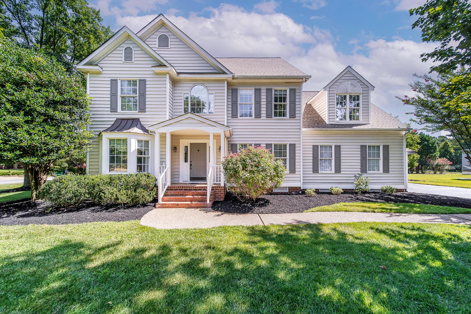 Welcome to 400 Hogans Court, located in the sought-after neighborhood of Rivers Bend. This home has 5 bedrooms, 4.5 bathrooms and 3,712 sqft. Pride in ownership shows with this stunningly maintained 2-story home. You and your family will enjoy the large private lot surrounded by mature trees, a spacious back deck and a beautifully landscaped yard. This property has many amazing features, including 2 master bedroom suites with one being on the first floor, a loft, multiple studies, fans on the back deck and a private back patio. The first floor has a formal dining room, living room, Florida room, family room with gas fireplace and renovated kitchen. Upon entry, you are greeted with a stunning 2-level foyer with a loft. Exterior maintenance is made easy with vinyl siding, paved driveway and irrigation system. This home also features a walk-up attic with lots of storage space. Rivers Bend neighborhood has walking trails, a pool, kids splash pool, tennis courts, pickleball courts, and a sand volleyball court. You are conveniently located to I95, 288, 64 and other major roads. 20 minutes from Richmond International Airport and 45 minutes from Williamsburg, VA. Welcome home.