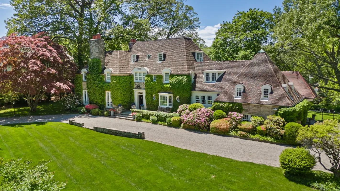 105 Woodside Drive captures the very best of Country Club Living in Greenwich. Chic stone classic set within the gated Milbrook community, home to the coveted Milbrook Club, with the opportunity to apply for private membership--creating a lifestyle where recreation, relaxation, and social life are just moments from your front door. Perfectly sited overlooking the lake with incredible water view on nearly an acre, the six-bedroom residence blends modern interiors with an effortless indoor-outdoor flow designed for entertaining and everyday enjoyment. Renovated and expanded for seamless living, the crisp, light-filled residence unfolds across four levels, highlighted by a spectacular great room with soaring 19-foot ceilings, elegant formal rooms, and a welcoming family room that opens to a gourmet kitchen with center island, professional appliances and a sunny breakfast room. French doors lead to terraces and a lush backyard--an inviting setting for outdoor dining, gatherings, and play. Upstairs, the serene primary suite offers generous walk-in closets and two luxurious baths, accompanied by three additional ensuite bedrooms. A versatile top floor provides two more bedrooms or a creative retreat, while the finished lower level (additional 1500+ sq ft) has another media area, gym, wine space and much more. Life in Milbrook is uniquely effortless--gated privacy, dedicated security and a neighborhood playground create a true sense of community