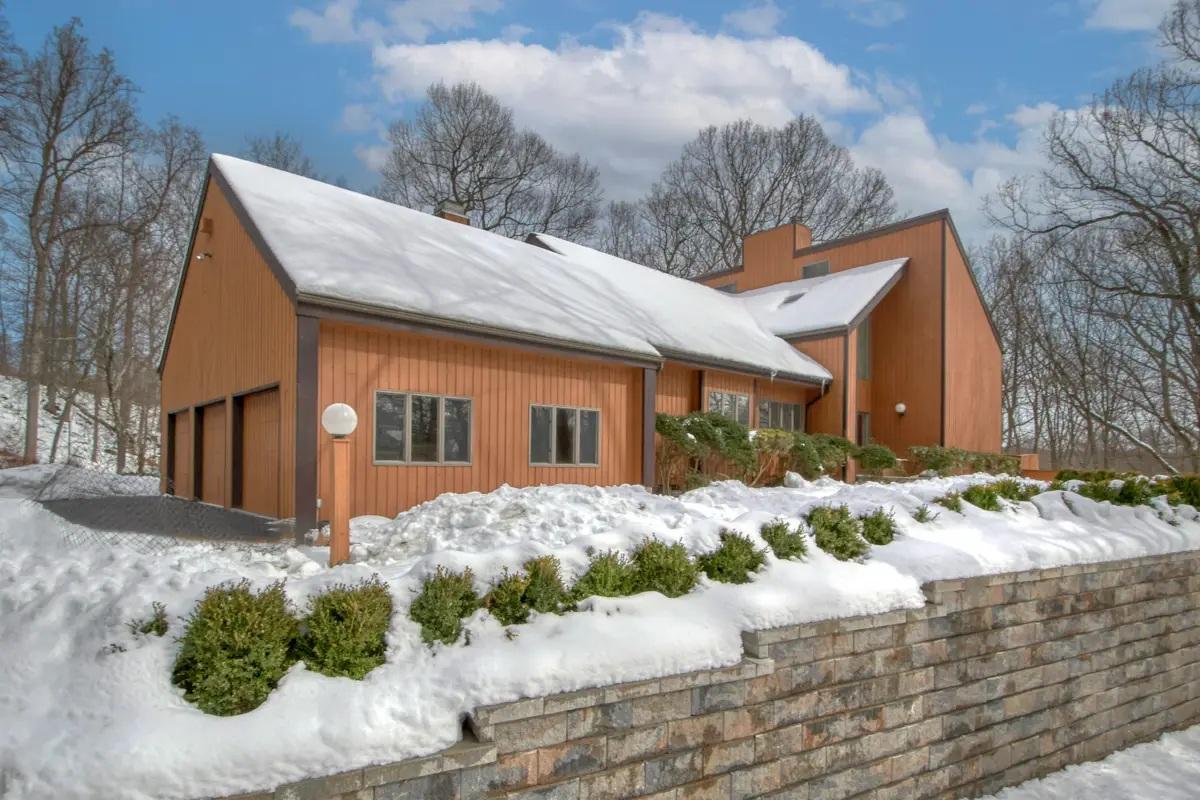 Majestic contemporary perfectly positioned at the end of a quiet cul-de-sac. This exceptional property has 1.22 acres and it enjoys a serene wooded backdrop providing enhanced privacy. Impressive 2-story entry foyer leads to sun-drenched living room with skylights and fireplace. Spacious eat-in-kitchen with island and generous dining area. The home features two expansive primary suites, including a main-level retreat for single-floor living and an upstairs suite offering added privacy. Both the family room with fireplace and the dining room have sliding doors to expansive wood deck at rear. Aside from the rear deck is additional outdoor living with ground-level terracing and decking off living room and den/office which is perfect for entertaining or relaxing. Two private balconies extend from second-floor bedrooms for elevated outdoor retreats. Extensive storage options include a spacious second-floor attic and a full unfinished basement.