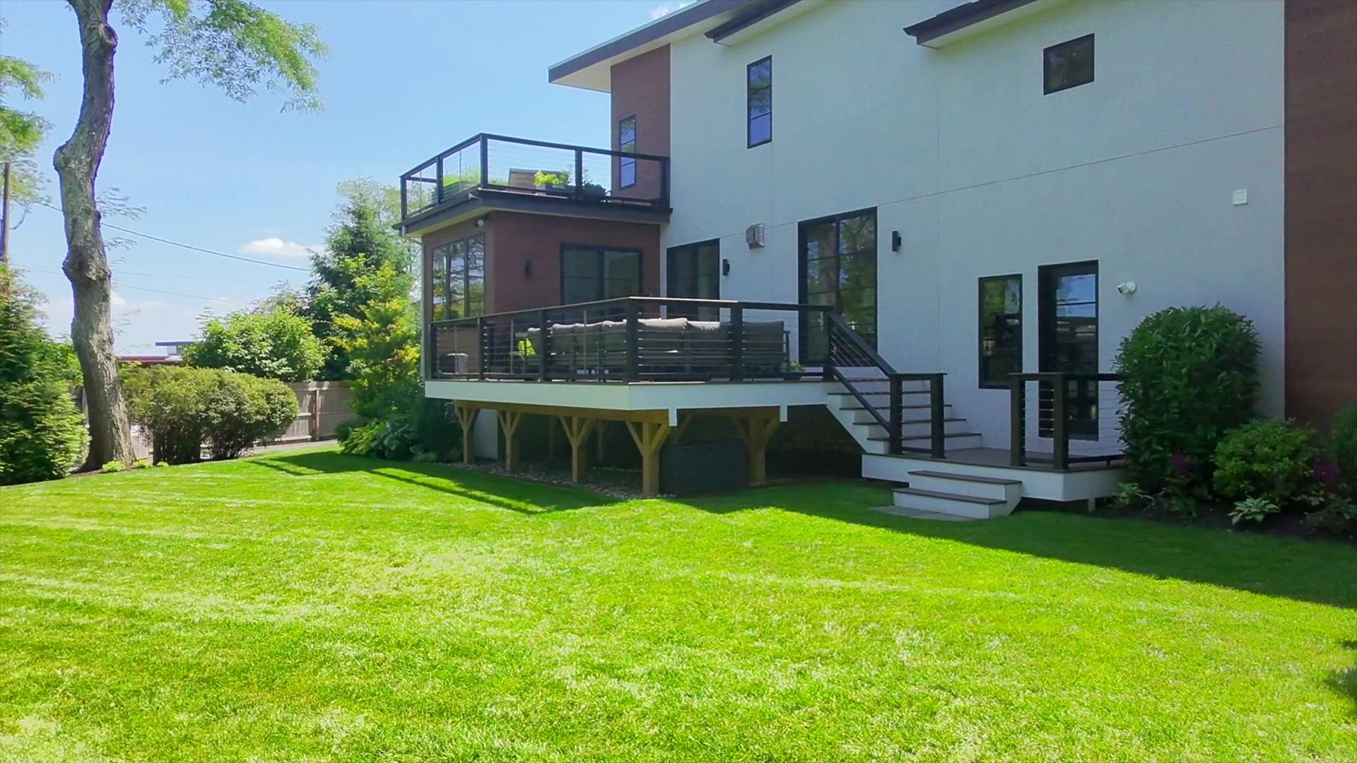 Live beautifully, by the shore. Introducing this sleek new 2021 architectural stunner with soul-soothing views of Long Island Sound and exclusive beach access just steps away. This striking coastal retreat is peacefully positioned on large, lush .39 acre grounds at the end of a private cul-de-sac in the desirable enclave of Orienta Point, where the only sound is the gentle sea breeze! A spectacular home that channels mid-century ease with a fresh modern edge – clean lines, gallery white walls and an airy open layout that’s flooded with natural light. Step inside to a soaring two story entry and into a fabulous kitchen and great room where views of the sparkling Sound delight. This space is laid-back luxe with a waterfall center island, sunlit dining area, an idyllic sunroom or playroom; all with glass doors out to a streamlined deck for entertaining and an expansive, level lawn. The family room is stunning and offers direct access to the backyard, complemented by a light-filled office, a chic powder room, and an au pair or guest room with ensuite bath. On the second floor are three bedrooms, one with an ensuite bath, and two that share a full hall bath with twin vanities, plus a conveniently located laundry. Up a few steps on its own level, the primary suite lives like a private sun-drenched sanctuary with panoramic water views, a dreamy wraparound deck, exercise room or second office, a resort like ensuite, and a walk-in closet to rival a designer boutique. On the lower leve