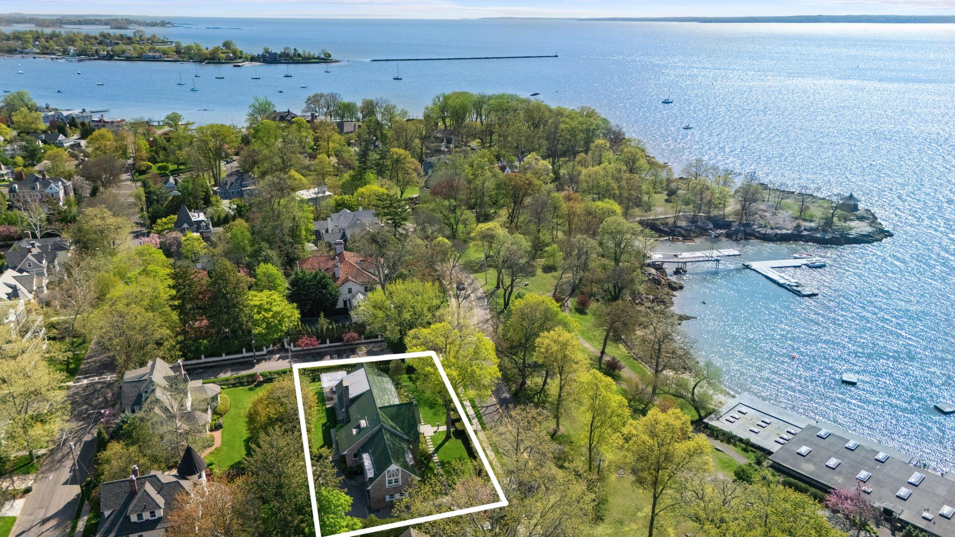 This is THE house everyone dreams of! A rare five-star coastal retreat with panoramic front-row views of Long Island Sound from almost every room. Welcome to pure serenity, nestled on a leafy corner overlooking Larchmont’s Manor Park & Beach. There’s nothing quite like it! Glorious gardens bursting with hydrangeas and roses, lush manicured lawns and a stunning bluestone patio that’s an alfresco delight. Entertaining here is simply next level. Inside is sunlit and spectacular, with rich-hued wood floors, and endless walls of windows where the water meets the sky. Every space is effortless luxury – living room with fireplace, dining room with mirrored barn door reflecting breathtaking water views, sleek chef’s kitchen in stainless steel and Quartz, a hip cool family room with a true NYC vibe and the perfect office with workstations for 2. This floor also features an exquisite private bedroom, a full bath and a powder room. Upstairs are four bedrooms including the primary with a spa-like bath, an ensuite bedroom and two bedrooms that share a full hall bath. The walk-out lower-level is fabulous - a laundry center with mudroom, full bath, guest/au pair bedroom, wine storage, exercise/media area and door to the two-car garage. Once in a lifetime!