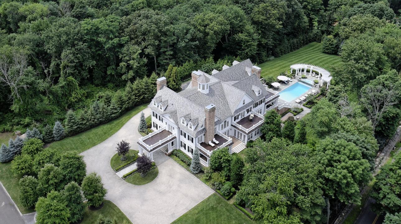 Majestic Richard Granoff designed manor on 2+ private acres radiates incomparable grandeur and sophistication. Stunning verandahs/balconies overlook English gardens, fountains, glorious terraces and heated pool w/spa and waterfall. Exquisite 16,000+SF interior centered by grand cupola-crowned rotunda. Magnificently scaled formal rooms; mahogany library; coffered family room opening to terrace; spectacular Christopher Peacock kitchen with Calacatta marble double islands; 14.6'x26' breakfast room; vaulted media/playrooms; 9 fireplaces; 3 powder rooms; 7 bedrooms with Waterworks baths. Extraordinary 1,400+SF master. Game room; home theater; 3,000-bottle wine cellar; home gym; attached pool cabana with kitchenette, spa bath, charming al fresco pavilion. Elevator; generator; heated 4-car garage.