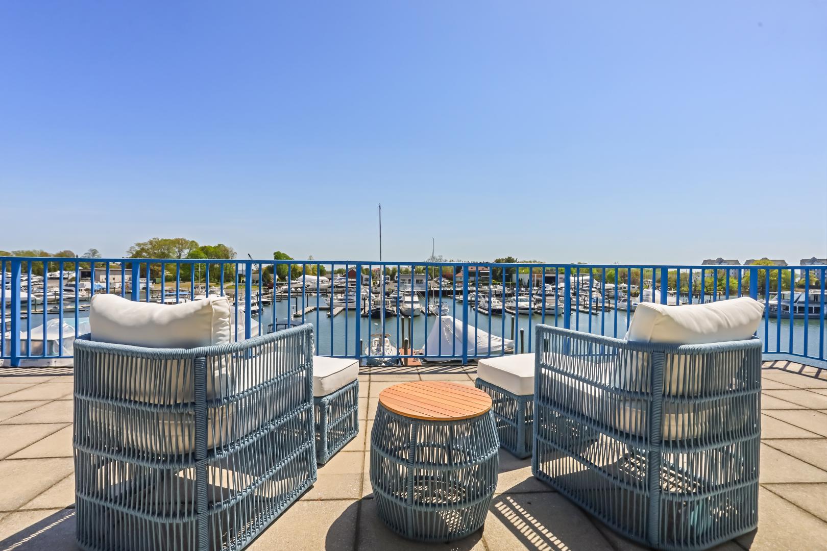 Exceptional Waterfront Living with Unrivaled Views. Nestled within an exclusive 16-residence boutique enclave, this impeccably renovated 2-bedroom, 2-bath home is a serene sanctuary offering million-dollar views and effortless luxury. Designed with both elegance and ease in mind, this no-step residence provides direct access from parking to unit—no stairs, no stress. Inside, natural light pours through expansive windows, illuminating the exquisite details throughout. From wide-plank wood flooring to radiant heated kitchen and bath floors. The open-concept living space is anchored by sleek quartz countertops, high end appliances, wine cooler and designer finishes, creating a sophisticated backdrop for daily living and entertaining. The tranquil primary suite features a custom dressing room that flows into a spa-inspired en-suite bath, delivering a private retreat designed for comfort and indulgence. A spacious secondary bedroom and full bath offer versatility for guests or work-from-home needs. Step outside to your oversized private terrace, where unobstructed water vistas become the perfect backdrop for morning coffee or sunset gatherings. Natural gas on the patio allows for seamless al fresco cooking and entertaining. Additional 300 square feet on patio More highlights include in-unit laundry, radiant heat floors in the bathrooms, retractable awning on the patio, two deeded parking spaces, access to a boat slip and dock, plus convenient on-site storage. Perfectly situated wi