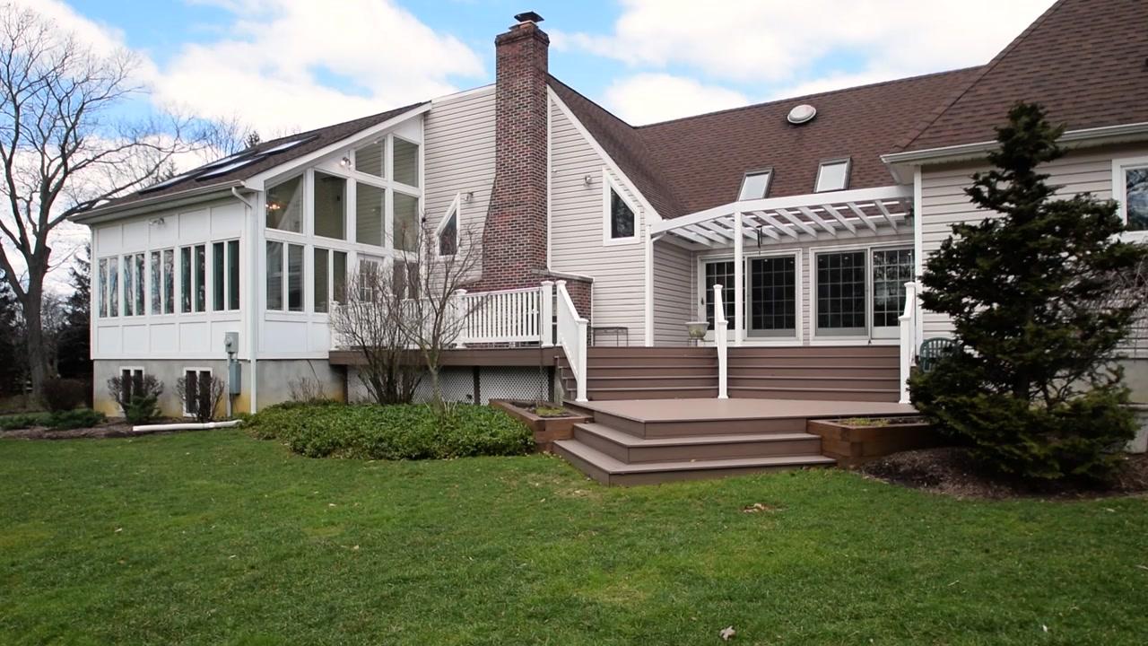 Tall, fragrant pines, a sweet gazebo, and a pool add romance to the 2+ landscaped, park-like acres framing this custom contemporary in historic Cranbury. French doors, skylights, and ample windows capture sunlight and send it cascading through an airy, open floor plan perfect for entertaining on any scale: in a gracious dining room, a room-for-all Great Room with a striking fieldstone fireplace, and a birch and granite kitchen, complete with a cook island, fine appliances, and vaulted breakfast room. Spaces for music, study, and contemplation include a bookcase-wrapped office, en-closed porch with views for days, a music room, and a spectacular solarium which opens to the 2-level Azek deck. The finished basement ably entertains with a half bath, wet bar, and game space galore. 3 first floor bedrooms and 2.5 modern baths include a master suite; a 2nd skylit, cathedral master suite is privately perched upstairs, a rest-ful retreat with a sitting room and sumptuous marble bath. Top Cranbury schools until 8th grade and then on to Princeton High!