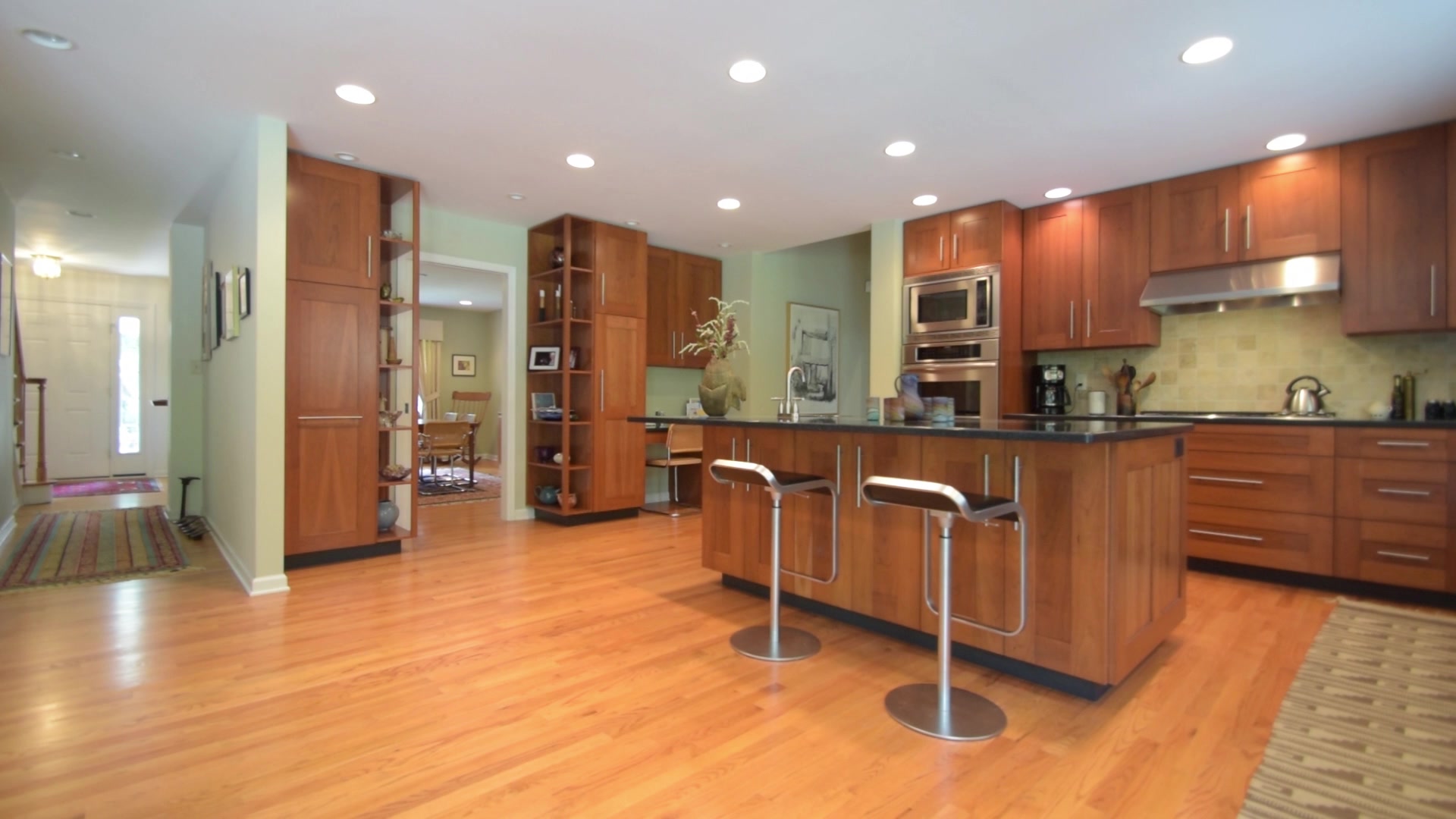 Dappled by old growth maples and pines, this tranquil Littlebrook home will delight with soothing, inspiring living and entertaining spaces. A center hall, flanked by an expansive dining room and fireplace-warmed living room, leads to the heart of the house: a sunlit, bookcase-wrapped family room open to a stunning custom kitchen. Here, framed by an expanse of glass windows and doors, stainless appliances and lustrous Silestone complement warm cherry cabinetry - all set against the backdrop of a very private, picture-postcard backyard. Wide stone patios lead to a charming pond with waterfall and exquisite gardens, whose colors and textures move beautifully through the seasons. Nearby, a matching laundry room shares a full bath with a spectacular vaulted studio, where a plethora of skylights and windows send sun spilling onto plentiful built-in cabinetry, creating a possible Great Room or the ultimate office. Upstairs, 2 baths serve 4 restful bedrooms, including the airy master suite with vaulted bath, graced by a jetted tub and separate shower.