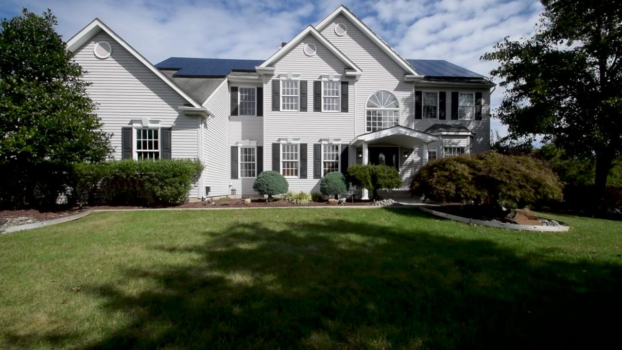 Three finely-finished floors and perfect entertaining flow allow this impressive Monmouth Junction Colonial to reinterpret tradition in a modern way. The foyer has a thoughtful drama with intricate molding and 2 stories of windows, and fans to a study/bedroom and a formal living room. Dinners become celebrations in the dining room, where a granite-topped sideboard handles the buffet. A pull-up island in the adjoining gourmet kitchen keeps the cook in the mix; modern amenities include stainless appliances, a walk-in pantry, and granite surfaces, including a wet bar. A wood-burning fireplace beckons from the open, vaulted family room beyond. Summer nights sparkle out on the wide deck, complete with a screened gazebo. The finished basement is the ultimate play zone, with a U-shaped wet bar, rec space, separate gym, and full bath. The luxury master suite is an end-of-day sanctuary with a 2-sided fireplace shared by a large sitting room. 3 more upstairs bedrooms share a hall bath. 3 car attached garage and additional 2 car detached garage. Home is equipped with solar panels.