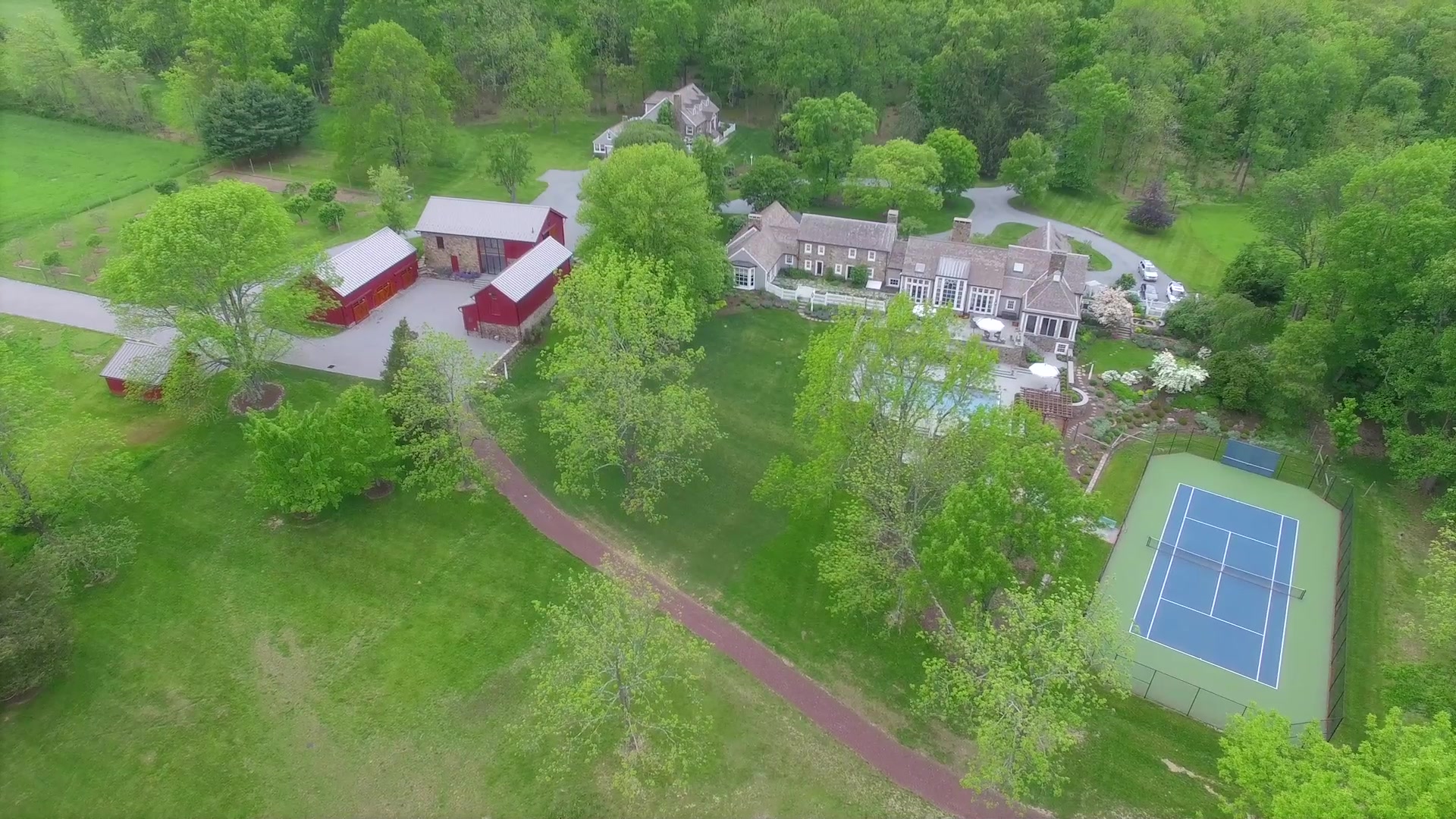 A visit to Stone Creek Farm is a transporting experience full of history, craftsmanship and the pleasures of refined country living. The 50-acre compound is nestled into the rolling Jersey countryside known for quaint river towns and equestrian pursuits. The highlight is the manor house with two luxurious wings unfolding from an 18th century stone farmhouse, which retains Dutch doors and a cooking fireplace beneath beamed ceilings. The master wing comprises a vaulted bedroom with enclosed rose garden, a study, his/hers walk-ins and a marble-sheathed bath. The paneled Great Room is magnificent with antique beams traversing the 23-ft high ceiling and loft. The chef's kitchen and sunroom open to the stone patio terracing down to a saltwater pool. A tennis court and gym will inspire fun and fitness. A stocked pond and fruit orchard are right at home amid a picturesque red 3-barn complex including the c 1740 event space stone barn. The 4-bedroom guest ""cottage"" behind its own white picket fence was also lovingly renovated and full of period charm.