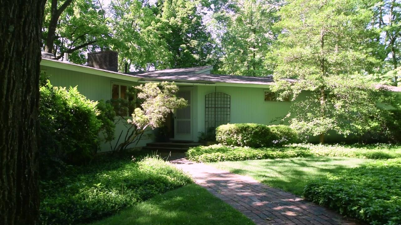 Henry Jandl, esteemed architect and emeritus Princeton University professor, sited this Edgerstoune mid-century modern to invite in the serene cocoon of beguiling gardens. A clever layout creates clear sight lines to the acre's wrapping greenery. Walls have been removed to create a centered, open living plan lined with hardwoods: galley kitchen with high-end appliance, formal dining room, and a snug den with a wall of bookcases. Guests will adore the private bedroom and full bath at this end of the home; a separate wing hosts 3 bedrooms, 2 modern renovated baths - one in the hall, the 2nd in the master suite - and a large laundry room. Downstairs, terra-cotta tile lines a spacious bonus room with access to a 2-car garage with a newly painted floor. Sure to become the favorite room in the house is the vaulted, fireside Great Room, whose vast expanses of glass frame the outdoors. A curved bluestone patio feels submerged in the lushness of the garden; a gentle knoll descends to the heated pool, whose shape echoes that of the home.