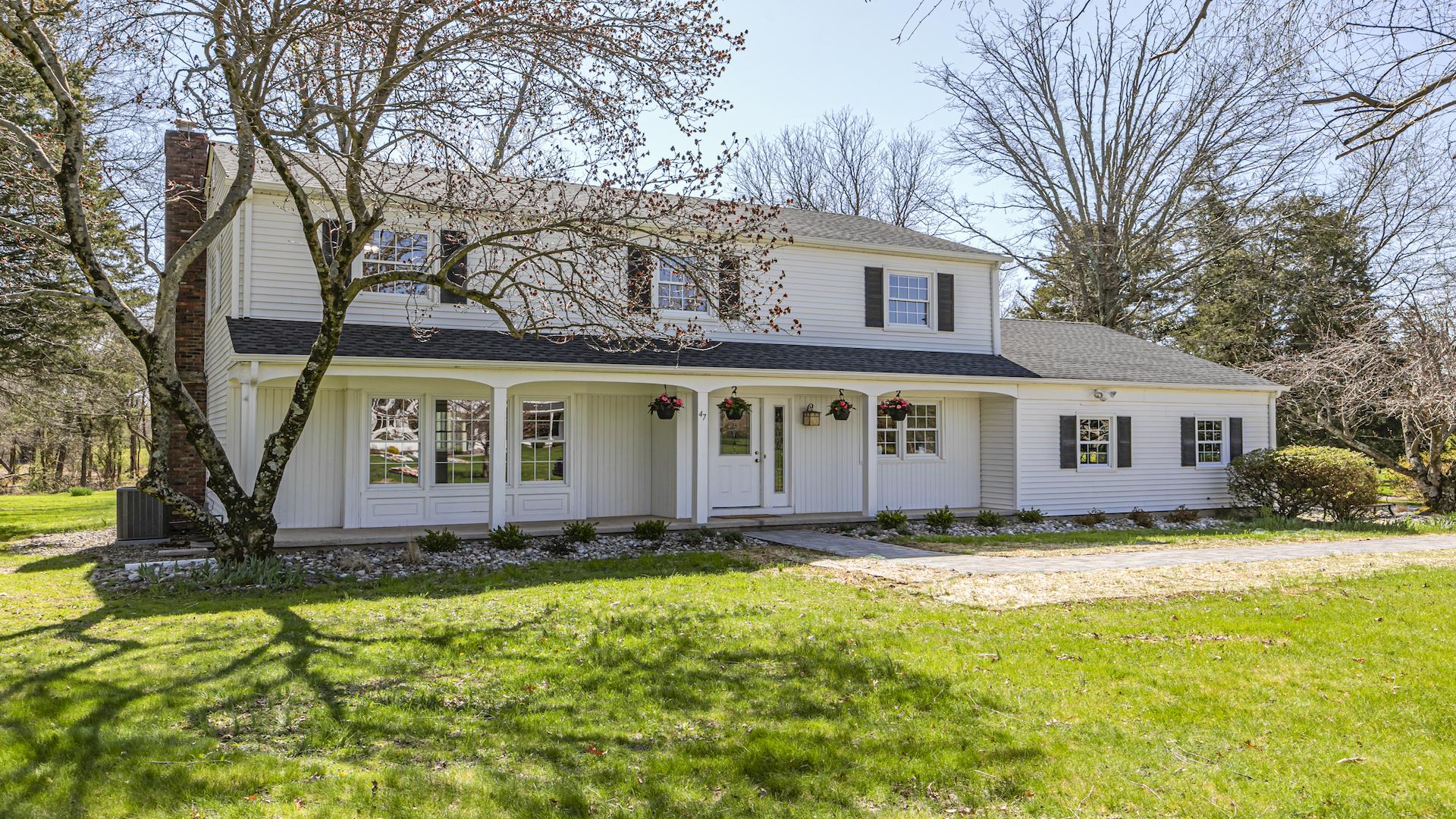 Private park-like paradise with towering trees and flowering shrubs on dead-end street neighboring preserved farmland! Dramatically and smartly renovated, this home has undergone a classic makeover with a modern twist. The newly finished oak floors throughout most of the first floor and entire upstairs exude charm and warmth. The eat-in kitchen (all stainless, with new range, dishwasher, granite, and LVT floors) and bathrooms have been touched with designer upgrades. Full of pleasant surprises"from the crown moldings to the huge laundry room and year-round sunroom (with central heat/AC and glorious views). From the wainscoting and window seat in the DR, to the overhead lighting and large picture window in the LR, to the built-ins and brick fireplace in the family room there's character throughout this bright, sunny floor plan. The main suite features a huge picture window (with views of sunrise and moonrise over the beautiful wooded lot), updated bath, and dual closets. With five true bedrooms plus the sunroom there’s space for home offices, guests, and more. The options are endless. With fresh paint, public sewer, and many new upgrades since 2020 (new floors, doors, roof, gutters, walkway, light fixtures, washer, dryer, furnace, AC, and water heater), this home is ready to go!