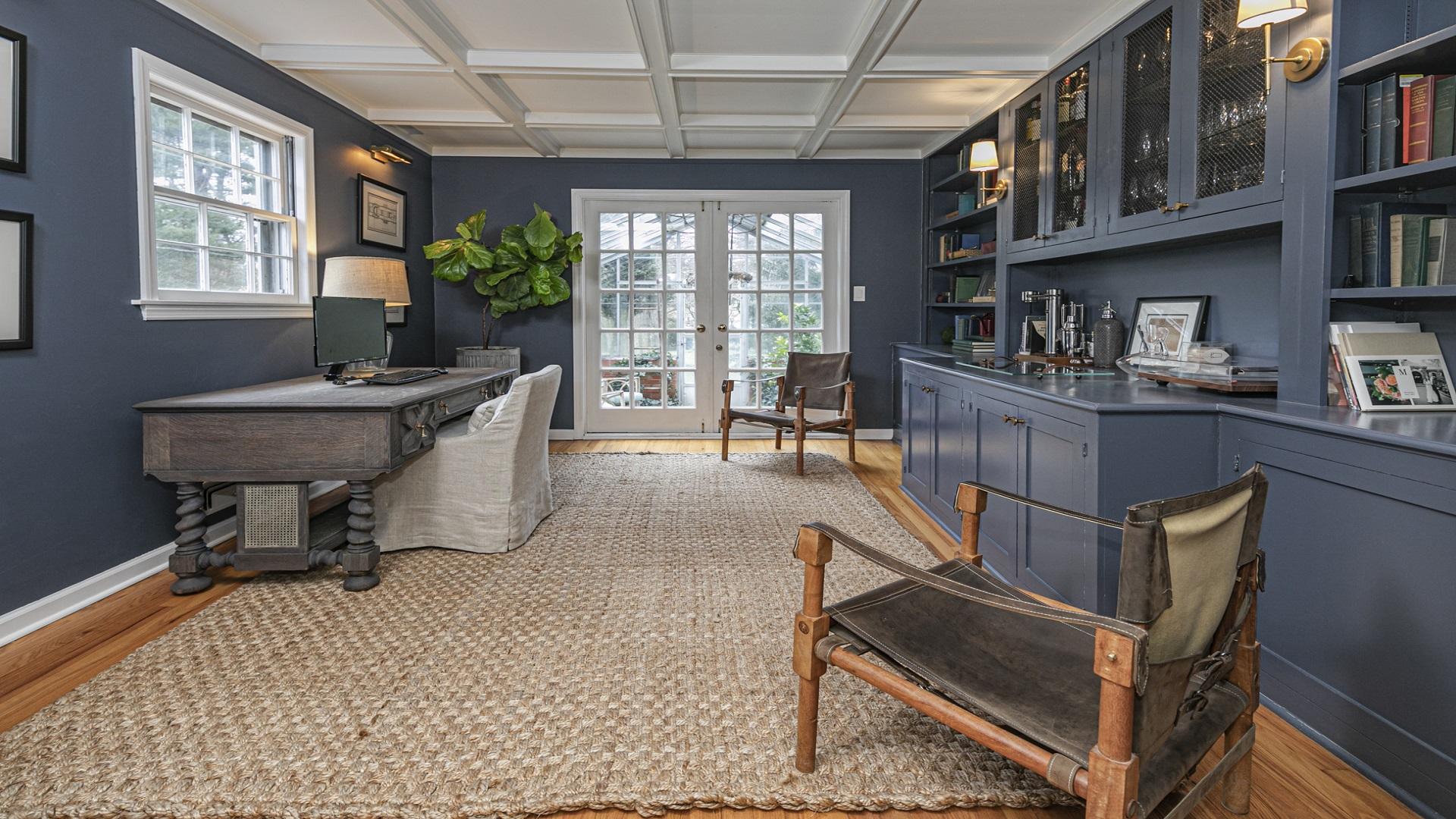Stylishly renovated by its talented owners, this impeccable Princeton Colonial absolutely wows from top to bottom, with carefully considered details that include hardwood floors, exquisitely redone bathrooms, and sophisticated built-ins. A coffered family room with deep blue bookcases is currently set up as a chic office; French doors lead to a charming greenhouse. Pocket doors lead to a stunning powder room, and the finished basement, which offers a pair of rec areas - one with an under-the-stairs reading nook. A fireplace and picture window imbue the vast living room with warmth; French doors lead from the dining room to a brick patio. An oversized brick fireplace adds farmhouse flair to a large eat-in kitchen, with a laundry/mudroom adjoining. Upstairs are a beautiful hall bath and 4 delightful bedrooms that include 2 with ceiling-high bookcases; the main suite feels like a boutique hotel with its spa bath. Backed by a fenced yard, this deep, 1+ acre sits in Princeton’s beloved Johnson Park School district, and is just a short drive from downtown.