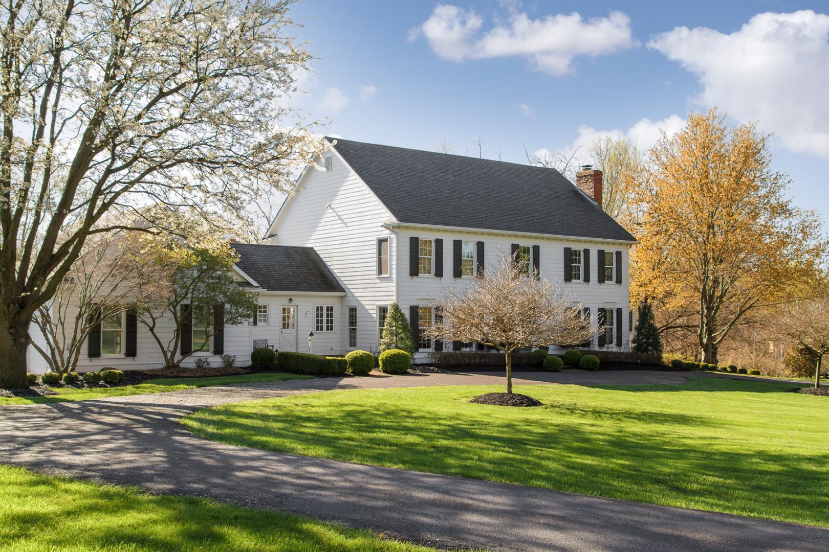 Beautifully situated on 5 acres, this classic, Colonial estate home offers privacy and quiet, country living in this equestrian community. Louisville architect, Frank Pierce, extensively remodeled this gorgeous home in 2004 for the current owners. This home “has it all” starting with a cook’s dream kitchen complete with a GE Monogram six burner gas cook top with a griddle, a warming drawer, custom cabinetry, gorgeous granite center island, 2 sinks, 2 dishwashers and an adjoining hearth room with a soaring ceiling that overlooks stunning views of rolling hills, woods and creek. The family room has a wood burning fireplace (one of three) and adjoins the kitchen and a charming screened porch, also accessible from the hearth room and master suite. From the custom built, walnut Butler’s pantry, the pool and Pennsylvania Bluestone terrace, basement bar and surround sound throughout the first floor, this home was built for entertaining family and friends. The large first floor master wing offers vaulted ceilings, a luxurious bath, large walk-in shower, double vanity, and a large walk-in closet. Finishing the first floor is a wood paneled library and dining area, powder room, great sized laundry room, office, a central control area with a mail and message center, mud room with built-in lockers and a full bath conveniently located right off from the outdoor pool. The second floor has the original Master Suite and three other generously sized bedrooms with a full bath with double sinks. The finished lower level is ideal for entertaining and family fun with surround sound, built-in cabinetry, a bar area, 2 bedrooms and a full bath. The wonderful outdoor living spaces and mature landscaping make this a special property, with evergreen trees, boxwoods, an apple orchard, wild blackberries, a creek and woods. Evergreen Farms is a 19 property estate neighborhood with horse board fencing and barns throughout. Enjoy the close proximity of the village of Anchorage without the higher taxes of the school district.
