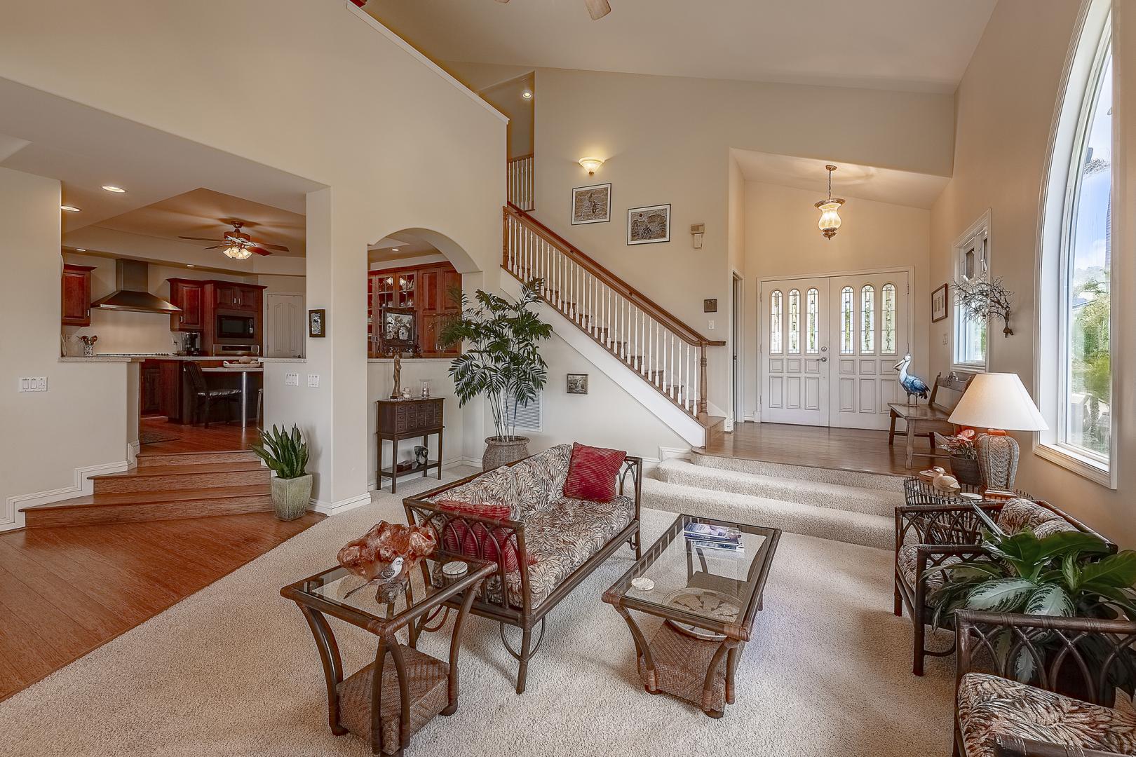 Prepare to be captivated and impressed as you walk in this home with breathtaking and unobstructed rim views of the all the best that Hawaii has to offer. A truly special home, ideal for entertaining. The use of space with a functional floor plan make it ideal for a design that will work for everyone looking for several family options. This home truly flows from one level to the next. Main level has a den that can be used as a bedroom and full bath, no stairs. Upstairs are all 3 bedrooms and the bottom floor can be used as an entertainment room or studio with separate entrance. Meticulously maintained and updated through the years, this home is equipped w/a 46 panel owned PV system, thermador gas stove, 3 zoned central air and so much more!