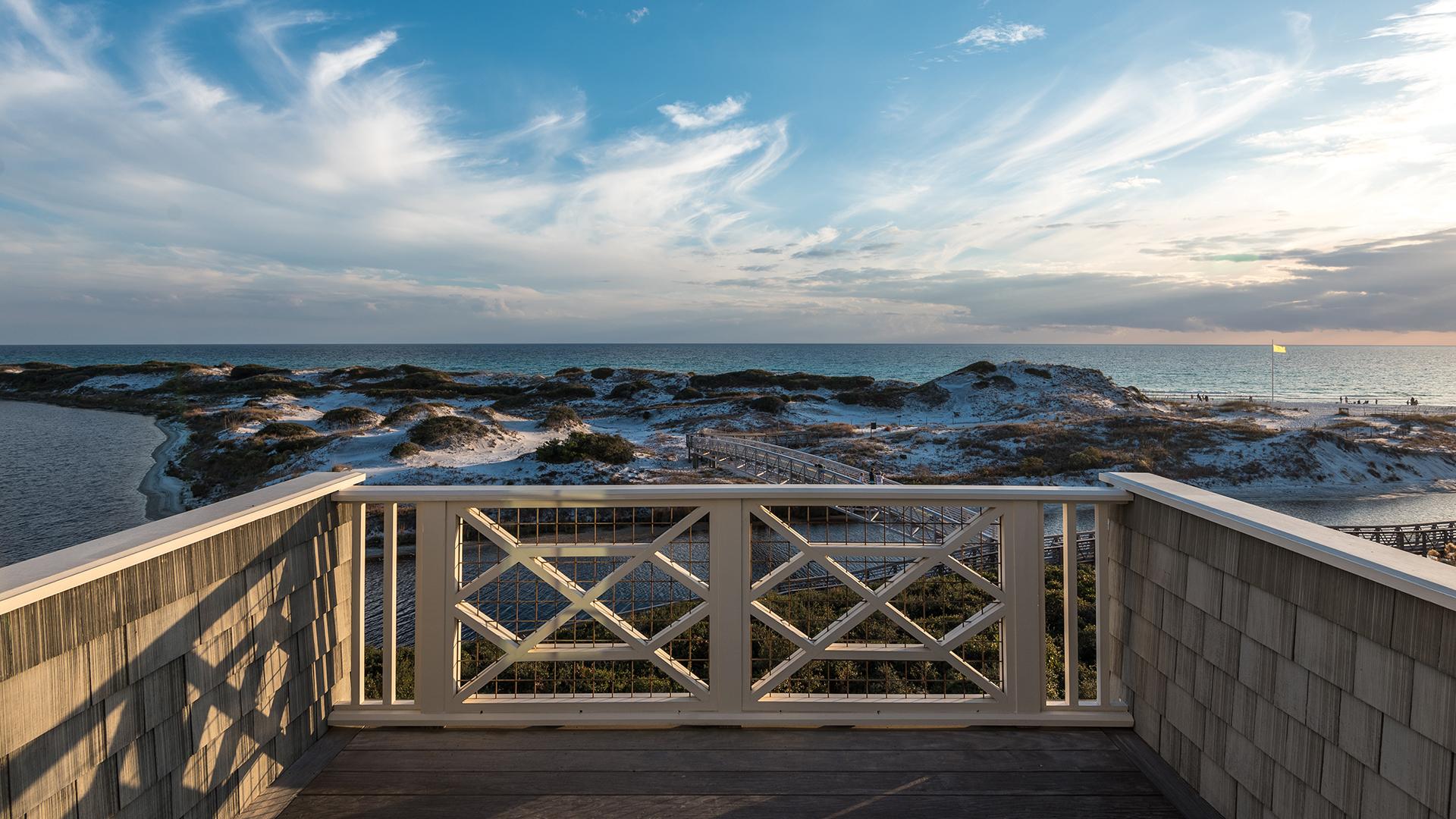 When superior quality, prime location, and spectacular views are desired, this WaterSound Beach home delivers unequivocally. With an all star design team, architecture by T.S. Adams Studio, construction by Davis Dunn Construction, and interiors by Bohlert Massey Interiors, this home is truly a must see. Three levels stand host to open living spaces, five bedrooms and five and a half bathrooms plus outdoor living spaces for mesmerizing views of the Gulf of Mexico. More than 4,000 square feet features true lathe plaster walls, cypress beamed ceilings, french white oak and coral stone floors, private elevator and marble countertops. NanaWall systems allow the exterior doors to fold like accordions to blur the juncture of indoor and outdoor living spaces.The second floor is home to grand entertaining spaces, an exquisite gourmet kitchen, and wine cellar. Calacatta gold marble counters and custom white oak cabinets contrast comfortably with the glass tile backsplash and high-end appliances in the exquisite kitchen with a near by generous butlers pantry. The master suite occupies the entire third floor. Complete with a private balcony and large spa like master bathroom makes it the perfect retreat for complete relaxation. The first floor embraces a second master bedroom with screened porch, bunkroom with its own private bath, additional guest bedroom with private bath, and a media room. Adjacent carriage house includes living area with kitchenette, bedroom, and full bathroom.