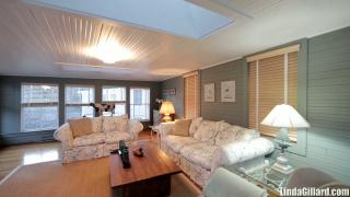 http://www.SandpiperRealty.com - Welcome to 289 Barnes Road! This home fronts directly onto the lagoon with a private, permitted dock! Enjoy excellent boating swimming, fishing, and more! The residence is a traditional Cape style but with a very open living plan offering windows to the water to enjoy the views! The main portion of the first floor is open - the only walls are framing the center staircase. A front to back living room with a picture window the entire width of the rear wall faces the water, as well as built-in bookshelves and a brick wall and hearth for the wood stove. For the chef in the family, the front to back kitchen and dining area features a second picture window and sliders to deck on the water side. The deck runs the entire width of the rear of the house. The master bedroom is also on the first floor and is very spacious with vaulted ceiling and large picture window to the water. A full bath features an exterior door and walk-in closet. The second level features wo guest rooms, comfortably accommodating queen beds and sitting areas, along with a shared bath. A study, den or family room is located above the garage and offers a second separate sitting area or extra sleeping space. It connects by separate stairway to 1st floor half bath and outside shower. The separate entrance is great for guests. A two bay garage is attached to the house with an enclosed breezeway that accommodates a half bath and the laundry room. The lagoon provides access to Vineyard Haven Harbor and then right out to Nantucket Sound!