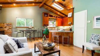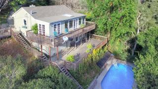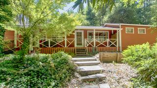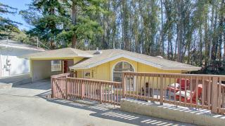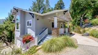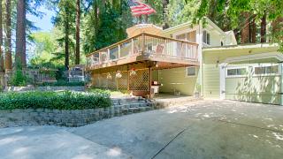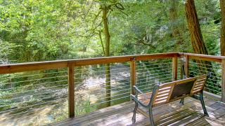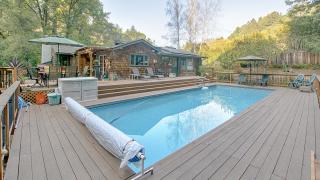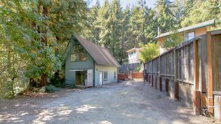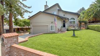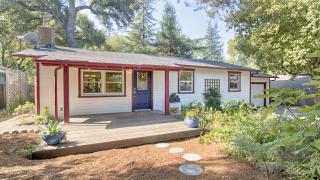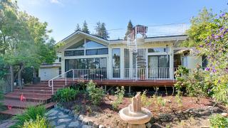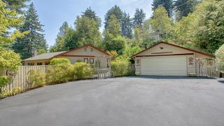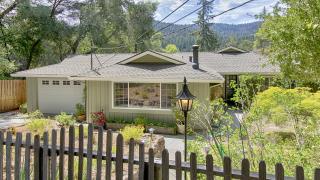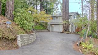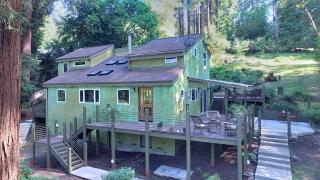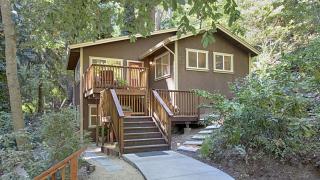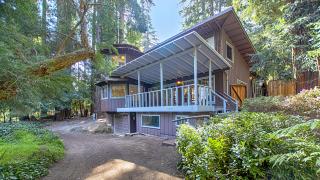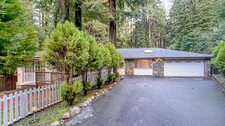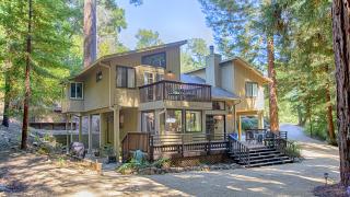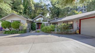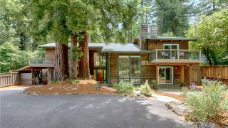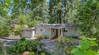 "Country Home in the City" located on a very private flag lot behind The Babbling Brook Inn, this very unique 4 BR, 3BA property is part of a 3 home development with views overlooking of Greenbelt,w/ refinished Pine and Bamboo floors,new Quartz Linen Counter tops,fresh paint and Sect 1 clearance,new roof & gutters,new dishwasher & refrigerator,ground floor bedroom with separate entrance,decks, sauna & terraced gardens!